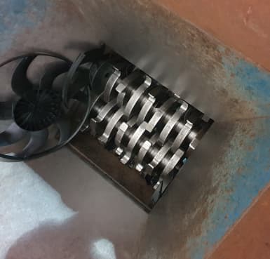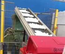 - Finåtervinning: Efter materialet har sönderdelats transporteras det vidare till en knivkvarn som maler det till mindre “flakes”.