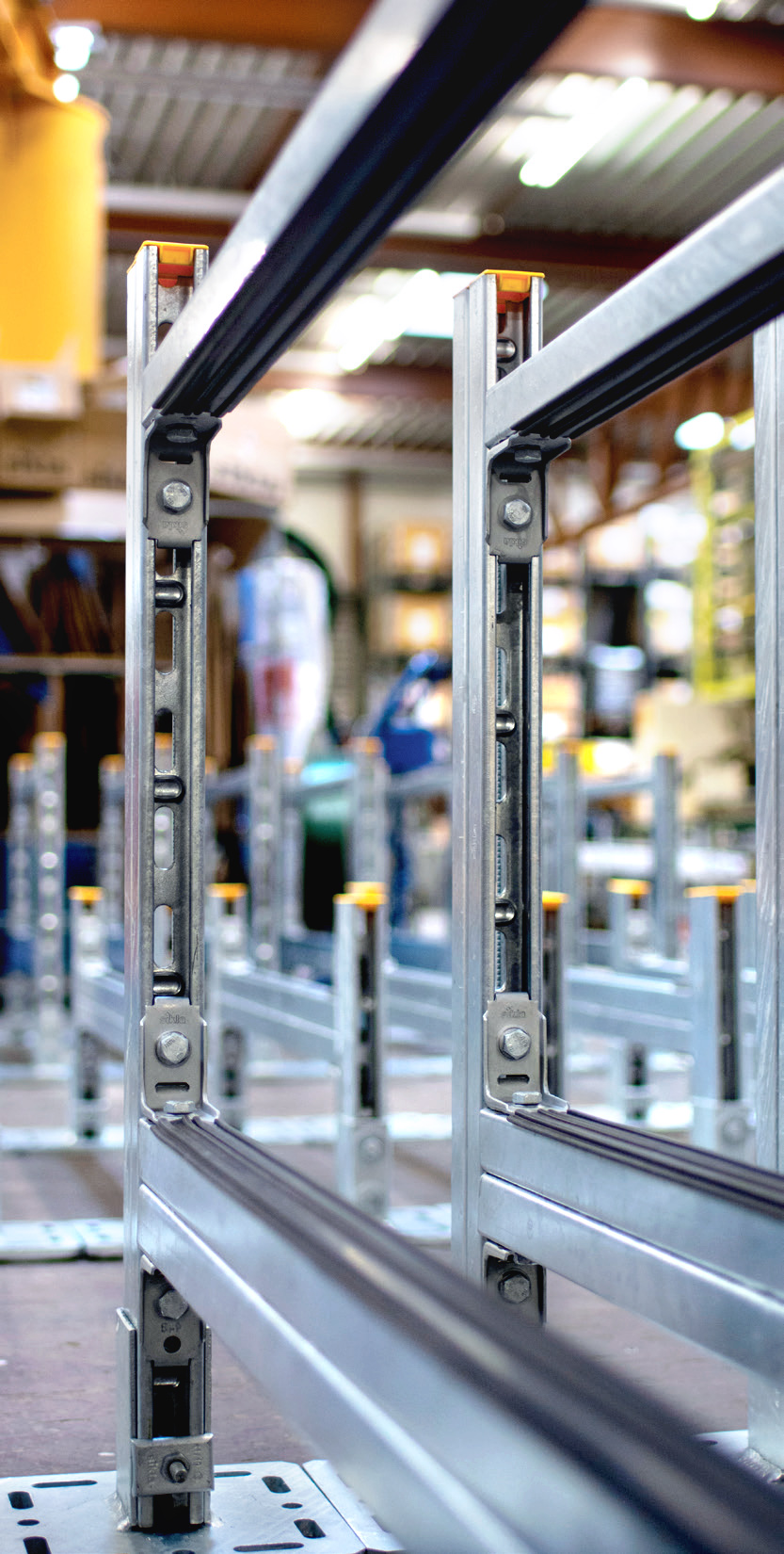 Våra montagesystem Pressix 27 och Pressix 41 är lämpade för effektiva installationer av små till medelstora laster. Förmonterade delar gör installationen enklare och erbjuder betydande tids- och kostnadsbesparing jämfört med traditionellt montage. Säkerheten; en viktig faktor. -Skenan, så väl som låsanordningen, tillåter högre laster och ingående montagedelar är utformade för hög säkerhet.